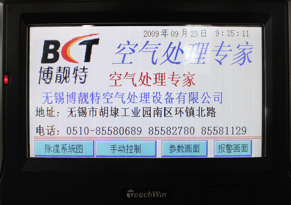 —臺好的設備,必須要有好的控制系統,人性化的智能設計、的系統控制,除了滿足必須的工藝生產要求外,生 產操作上的便捷也是一件令人愉快的事。無錫博靚特空氣處理設備有限公司一貫秉承“精益求精,以人為本“的設計理 念,選用全世界的自控元器件,精心設計的全方位控制流程,便捷清爽的操縱管理模式,構建出一臺高效智能的除濕 設備。